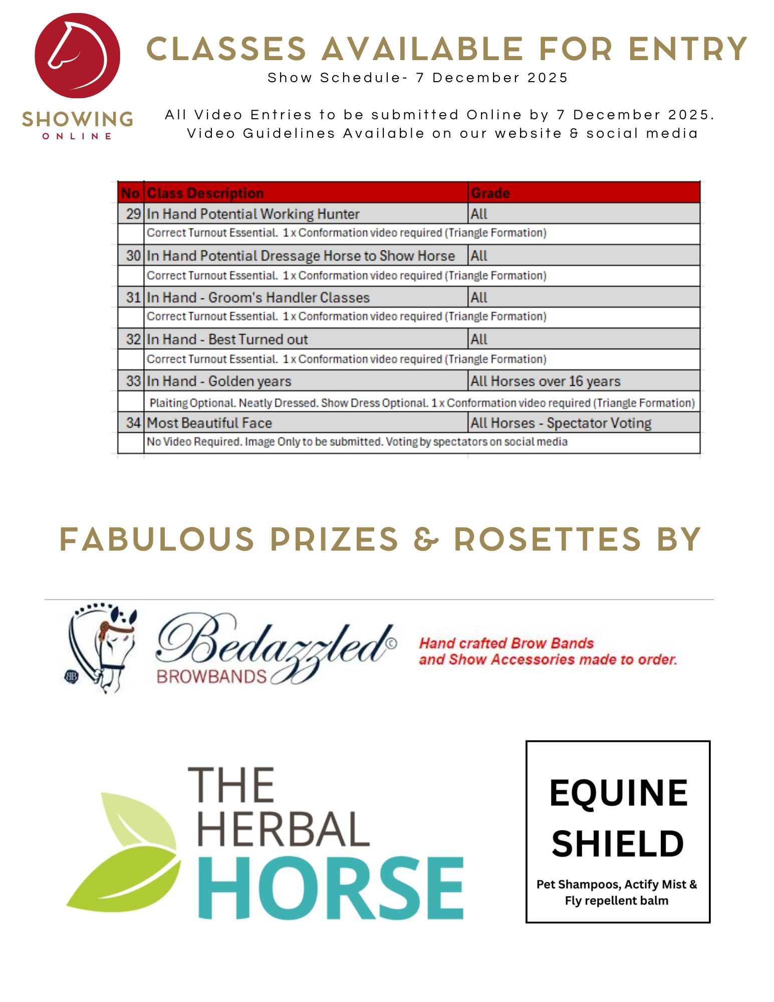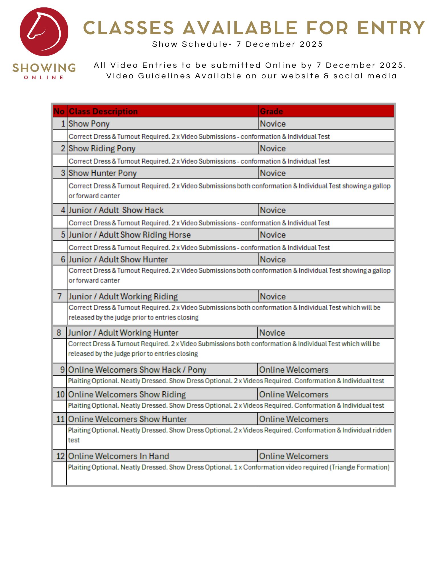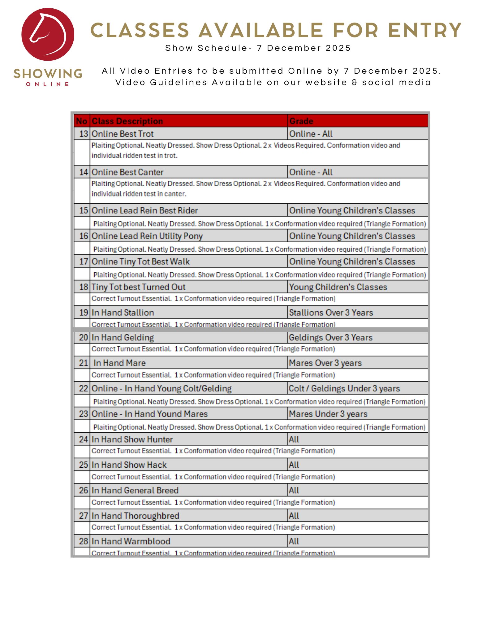 Welcome to our Show Schedules page! Here you’ll find the latest dates, entry deadlines, and class details for all upcoming online competitions. Whether you’re a seasoned competitor or just starting out, our virtual shows make it easy and accessible to participate from anywhere.
